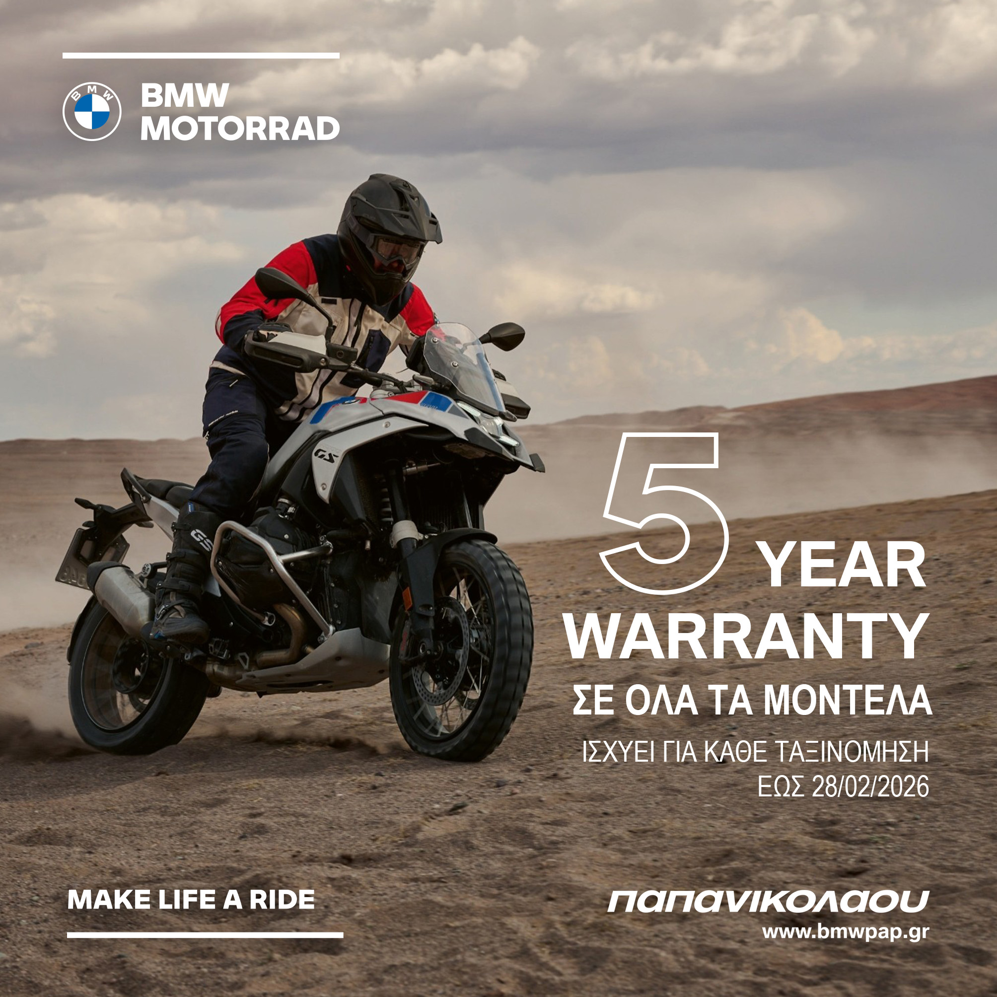 5 Χρόνια Εργοστασιακή Εγγύηση σε όλα τα μοντέλα BMW Mοτοσικλετών & Scooter!