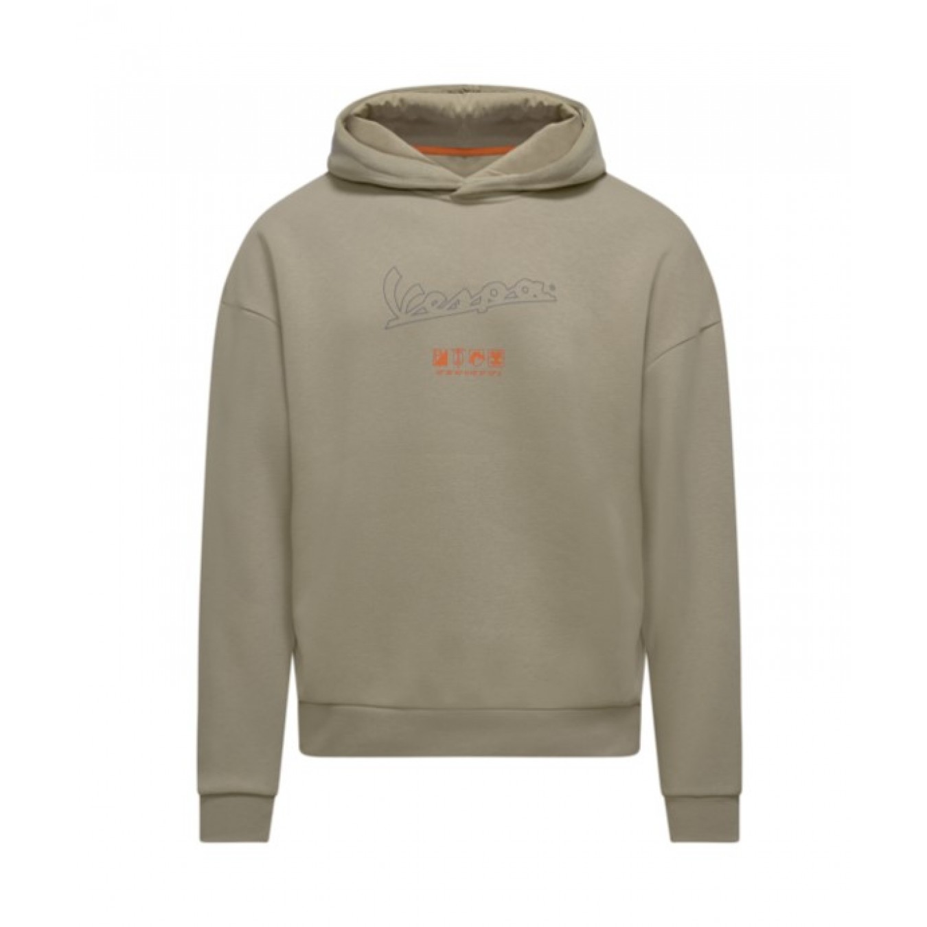Άνετη και ζεστή μπλούζα με κουκούλα από απαλό και βουρτσισμένο βαμβακερό ύφασμα. Με το εμβληματικό λογότυπο Vespa και τα νέα γραφικά Vespa DEC στο μπροστινό μέρος και μια αποκλειστική τυπωμένη ετικέτα στο εσωτερικό.