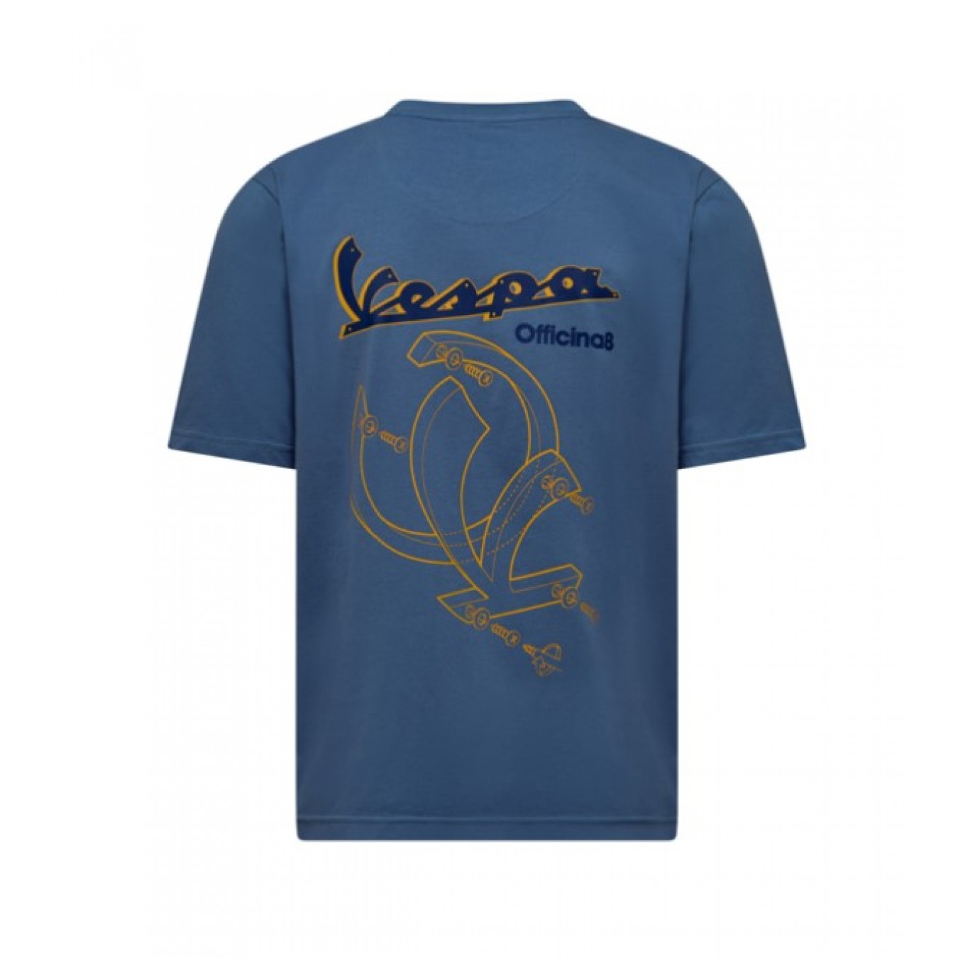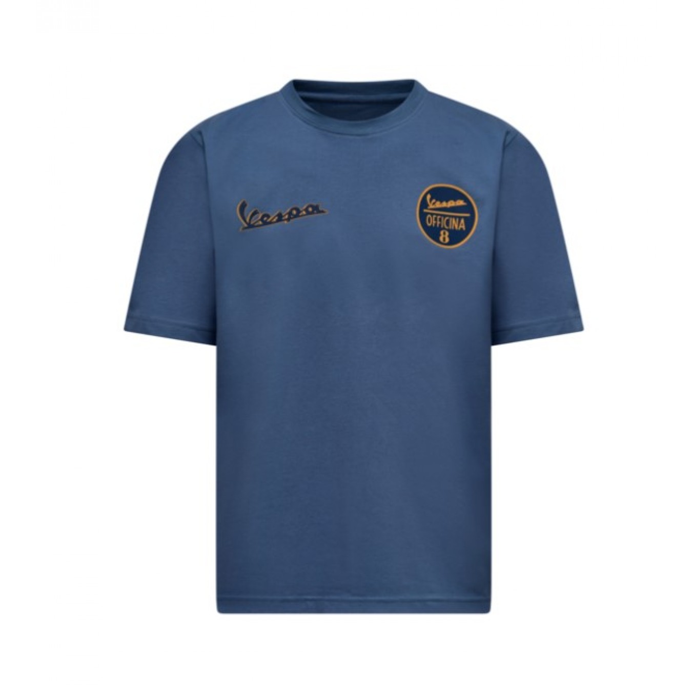 Το λογότυπο Vespa Officina 8 είναι ένα ξεχωριστό χαρακτηριστικό σε αυτό το μπλουζάκι από 100% βαμβάκι, το οποίο περιλαμβάνει επίσης μια αποκλειστική τυπωμένη εσωτερική ετικέτα. Συσκευασμένο σε διαφανή ετικέτα Vespa από πολυαιθυλένιο, από χοντρό χαρτόνι Αβάνας και γνήσιο χαρτόνι.