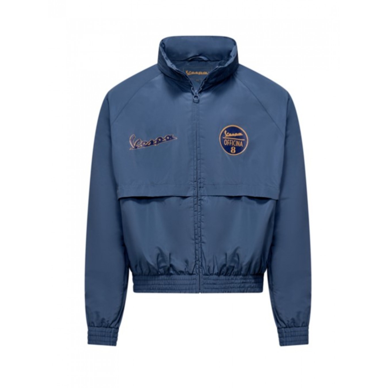 Μαλακό και ελαφρύ αντιανεμικό μπουφάν με υδροαπωθητική επεξεργασία. Το μπουφάν είναι εξατομικευμένο με το λογότυπο Vespa Officina 8 και νέα γραφικά που παραπέμπουν στην ιστορία της μάρκας. Διαθέτει αναπνεύσιμη, ίδιας απόχρωσης επένδυση από πλέγμα για επιπλέον άνεση. Υπάρχει ένα αόρατο φερμουάρ στο λαιμό από το οποίο μπορεί να αφαιρεθεί η κουκούλα. Μια νέας εμφάνισης εσωτερική τυπωμένη ετικέτα είναι μόνο ένα παράδειγμα της σχολαστικής λεπτομέρειας που αναβαθμίζει αυτό το μπουφάν από τα συνηθισμένα. Συσκευασμένο σε μια διαφανή ετικέτα Vespa από πολυαιθυλένιο σε χοντρό χαρτόνι Αβάνας και προέλευσης.
